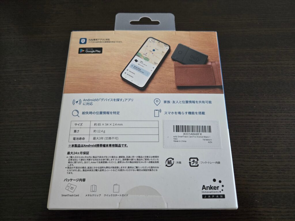 まずは Anker Eufy SmartTrack Card の基本仕様を簡単に紹介します。