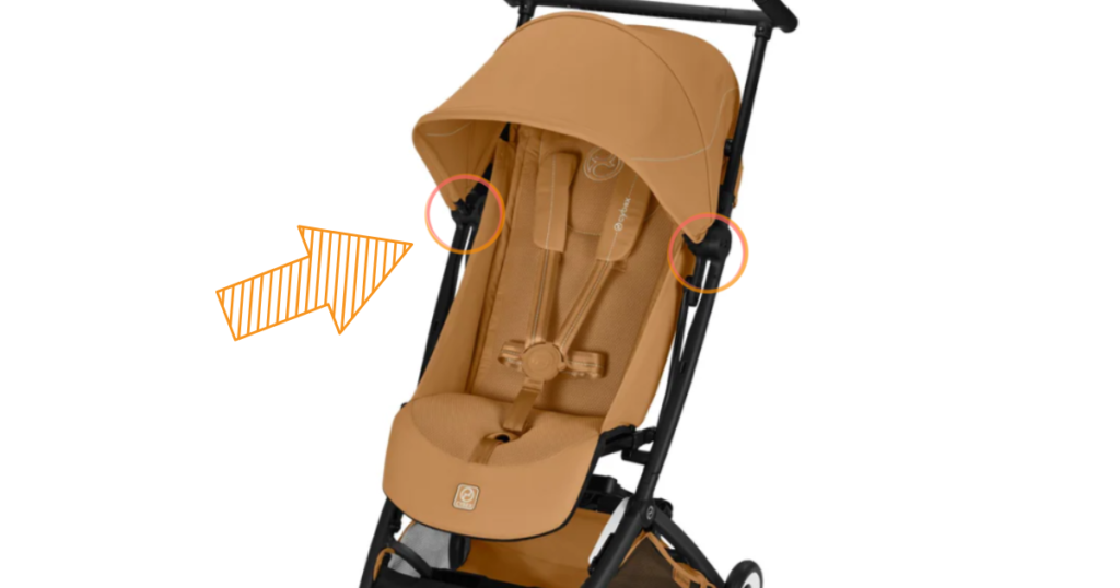 リベルは折りたたみ機構の関係で、ちょうど子どもの頭の高さ付近にフレームの関節部の出っ張りがあります。