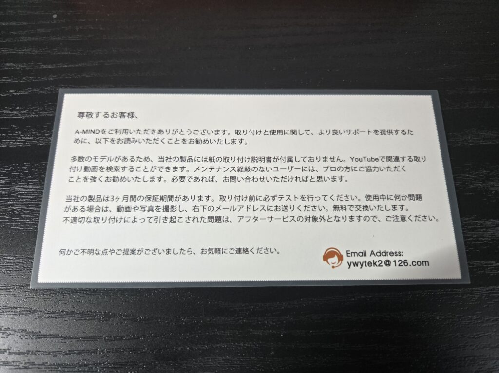 顧客向けの説明書類も同梱されていたのですが、記載の通りで交換手順の説明書などは入っていませんでした。