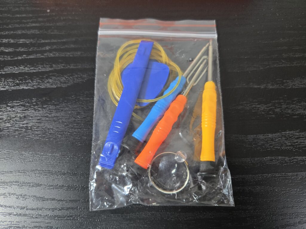 付属の工具類です。結局使用したのは吸盤とピックのみで、その他は不要でした。