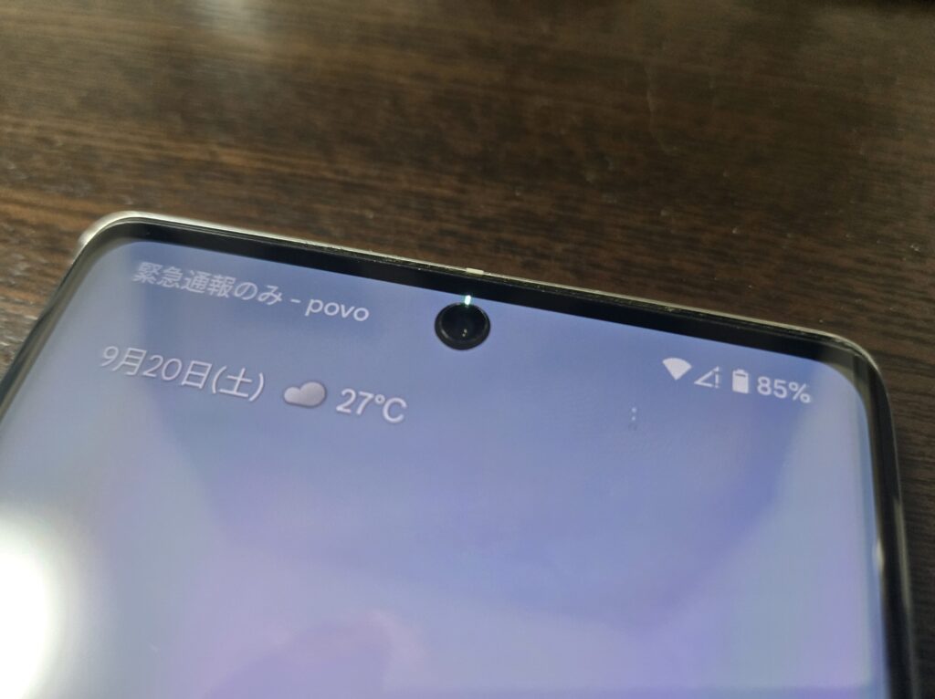 ↓フロントカメラの上部が緑色に光っているのがわかるかと思います。