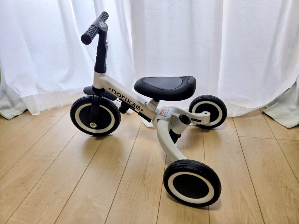 一番のメリットですが、三輪車モードからキッズバイクモードまで対応しているため、成長に合わせて長期間使用可能です。