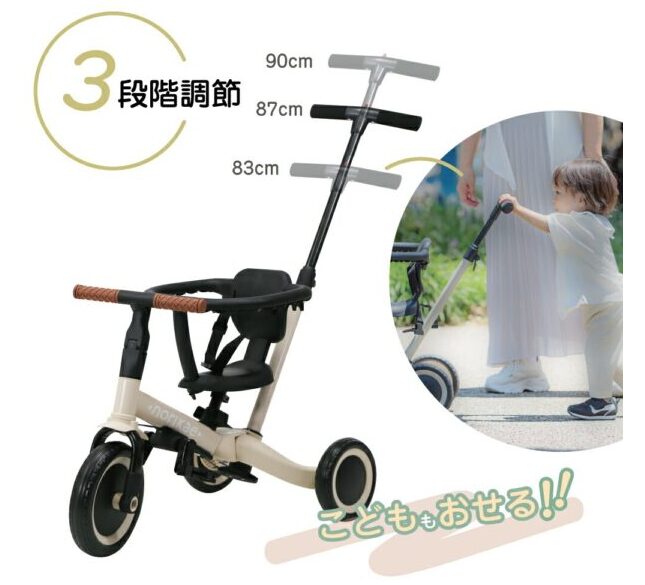 押しボタン一つで変形できるので、「今日は三輪車」「次はキッズバイク」といった切り替えも屋外で気軽にできます。